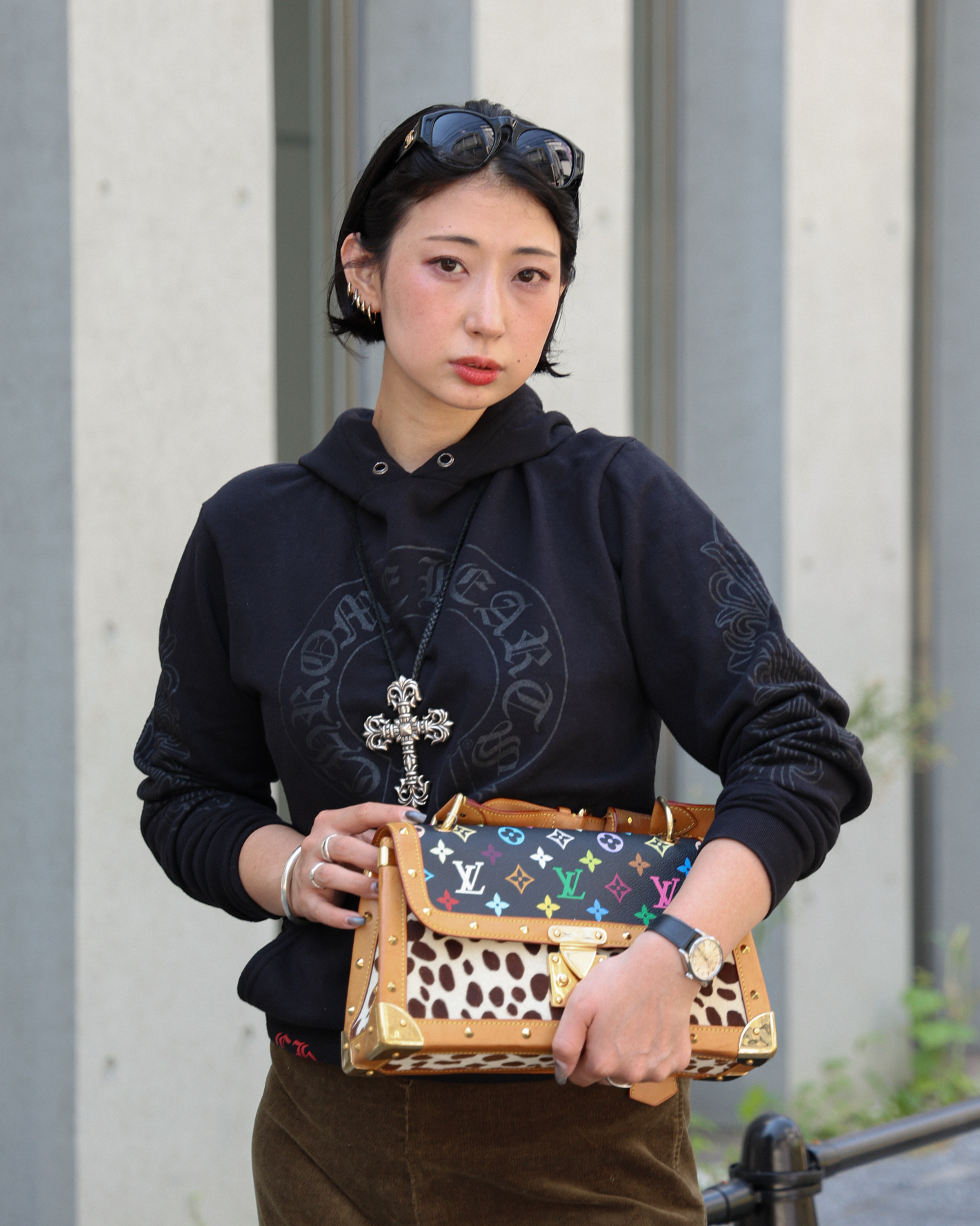 TOP FEATURE 早く着たい!2025オータムコーデ 特集 季節の変わり目が待ち遠しくなる、この秋おすすめのMixTHINKSスタッフコーデ5選! 個性とトレンドを取り入れた「今すぐ真似したい」スタイルをご紹介。 新しい季節のファッションヒントをぜひチェックしてみてください。 HERMES トルサード ネックレス シルバー 925 ジャケット スタイリスト私物 #01_Street Meets Classic Bag 2WAYで楽しめる エルメストルサード ネックレス を主役にしたストリートコーデ。 無骨さと優美さを兼ね備えたツイストチェーンが、シンプルな白いインナーにクールなアクセントをプラス。 ウエスタン調の刺繍ジャケットと、フレンチトラッドのゴヤールサンルイ を合わせることで、大人の余裕漂うスタイルに仕上げている。 GOYARD サンルイ PM トートバッグ PVC Aoshi / 173cm CHANEL ココマーク B22P ハート ネックレス CHANEL カメリア トートバッグ ラムスキン #2_Chanel Lover’s Styling シャネル好きにはたまらない、クラシックなピンクのウールジャケットを主役にしたオータムコーデ。 カジュアルなデニムと合わせることで、肩肘張らない大人の余裕を演出。 胸元に光るシャンパンゴールドのハートモチーフネックレスが、華やかさとフェミニンな気品を引き立てます。 仕上げには、大きなカメリアが印象的なレザートートバッグをプラスして、エレガントさと存在感を兼ね備えたスタイル。 CHANEL ジャケット ウール ピンク Hikaru / 162cm LOUIS VUITTON キーポルバンドリエール 50 M45428 Christian Dior サングラス #3_Classic Black × Playful Bag レザージャケットが主役になる季節が到来!背中に控えめに輝くプラダのトライアングルロゴが、さりげないこだわりを演出。 オールブラックのスタイリングに映えるのは、グラフィカルなクラウドモチーフが目を奪うルイ・ヴィトン キーポル50。ブルーのグラデーションが印象的なボストンバッグがコーデ全体を引き立て、大人の遊び心と余裕を感じさせる。 PRADA 23AW レザージャケット 46 ラムレザー Takahiro / 190cm CHROME HEARTS フィリグリークロス ネックレス LOUIS VUITTON サック ダルメシアン M92825 #4_Own Your Look 世界中のストリートからセレブリティまでを魅了する、クロムハーツのパーカーとクロスネックレス。存在感のあるシルバーアクセサリーが、コーデ全体に力強いエッジを加える。そこに合わせたのは、ルイ・ヴィトンのダルメシアン柄バッグ。 大胆なアニマル柄とマルチカラーのモノグラムが、遊び心とラグジュアリーな気分を同時に満たしてくれる。 個性を隠さず、自分らしさを堂々と表現する――まさにクロムハーツ×ルイ・ヴィトンが魅せるラグジュアリーストリートの真髄。 CHANEL サングラス ココマーク ブラック CHROME HEARTS パーカー M ブラック Hikaru / 162cm LOUIS VUITTON サングラス ダミエ トップス スタッフ私物 #5_Smart Casual ザ ロウの名品「マルゴー12」を軸に組み立てた、大人のスマートカジュアル。上質なレザーバッグが放つ存在感が、スタイリング全体をぐっと格上げしてくれる。鮮やかなブルーシャツにレジメンタルタイを合わせ、クリーンで爽やかな印象に。 ワイドパンツでリラックス感をプラスし、ルイ・ヴィトンのサングラスで都会的なエッジを添えて。 バッグを中心に据えながらも、洗練さと余裕を感じさせる理想のスタイル。 THE ROW マルゴー 12 ブラック カーフスキン Satoshi / 175cm Styling by Satoshi Photography by ENA