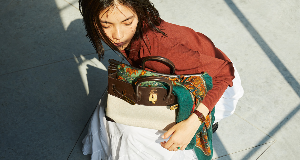 TOP FEATURE Stole on Bag Stole on Bag さらりとかぶせたストールで 「動きと余韻」を演出する コーディネートに占める面積が大きい分、デザインはもちろん 「どんな雰囲気で持つか」も全身の決め手になるのが大ぶりのバッグ。 バッグの存在感とオーラに負けずに持ちこなしたいから、 いかなる名品であれ、ざっくりと気負わず持つのがいい。 気に入ったバッグの大きな開口部に、好きなストールをさらっとかけてみて。 バッグというかっちりとした個体に途端にしなやかな動きが備わる。 さらに、「いいバッグ」の存在感、という目に見える価値だけではなく エレガントさやたおやかさなど、見えない価値を着こなしに加えることができる。 美しいバッグを手に入れたら、 それを軸に、見えないニュアンスを操れる人になろう。 1~16件 (全16件) 1 SOLD OUT HERMES ケリー 28 1993年 ○W ハンドバッグ ゴールド ゴールド アルデンヌ ¥2,090,000 SOLD OUT HERMES バーキン 30 2013年 □Q ハンドバッグ エトゥープ シルバー トリヨンクレマンス ¥2,420,000 SOLD OUT HERMES バーキン 40 2011年 □O ハンドバッグ パールグレー シルバー トゴ ¥1,323,080 SOLD OUT HERMES カレ 90 ブランデンブルク飾り スカーフ ブルー シルク ¥48,400 SOLD OUT HERMES ケリー ラキ 40 2005年 □I ハンドバッグ ノワール シルバー ボックスカーフ ¥3,080,000 SOLD OUT HERMES カレ PAZ UNIVERSAL / 大空の狂気 スカーフ グリーン オレンジ コットン ¥44,000 SOLD OUT HERMES ケリー 25 2018年 C ハンドバッグ エタン ゴールド トゴ ¥2,970,000 SOLD OUT HERMES カレ 90 Plumes et Grelots / 羽飾りと鈴 スカーフ ベージュ ブルー ゴールド シルク ¥38,500 SOLD OUT HERMES バーキン 35 2004年 □H ハンドバッグ ハバナ ホワイト ゴールド トワルアッシュ クシュベル ¥1,650,000 1~16件 (全16件) 1 RECOMMENDED 10 10 最近見た商品 SOLDOUT 2025/03/20 11:00:00 MIU MIU サイドリボン ショルダーバッグ ベージュ ゴールド レザー 2025/04/26 11:00:00 CHROME HEARTS レースストッパー シルバー 925 ¥143,000 SOLDOUT 2025/03/29 11:00:00 GUCCI ジャッキー ショルダーバッグ ブラウン グリーン レッド ゴールド キャンバス SOLDOUT 2025/04/05 11:00:00 CHROME HEARTS NE チェーン ネックレス 20インチ シルバー 925 2025/04/12 11:00:00 CHANEL ココマーク ニットキャップ グレー カシミヤ ¥132,000 SOLDOUT 2024/06/18 11:00:00 HERMES エヴリン TPM 2023年 B ショルダーバッグ ベトン シルバー トリヨンクレマンス SOLDOUT 2025/11/15 11:00:00 CHROME HEARTS CHプラス ニットキャップ ブラック ホワイト アクリル
