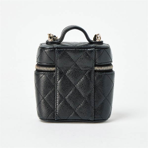 人気のマトラッセシリーズの2wayミニバニティバッグです。ブラックの高品質なキャビアスキンがシンプルで、上品で都会的な印象を演出します。CCロゴがアクセントになり、特別感を引き立てます。