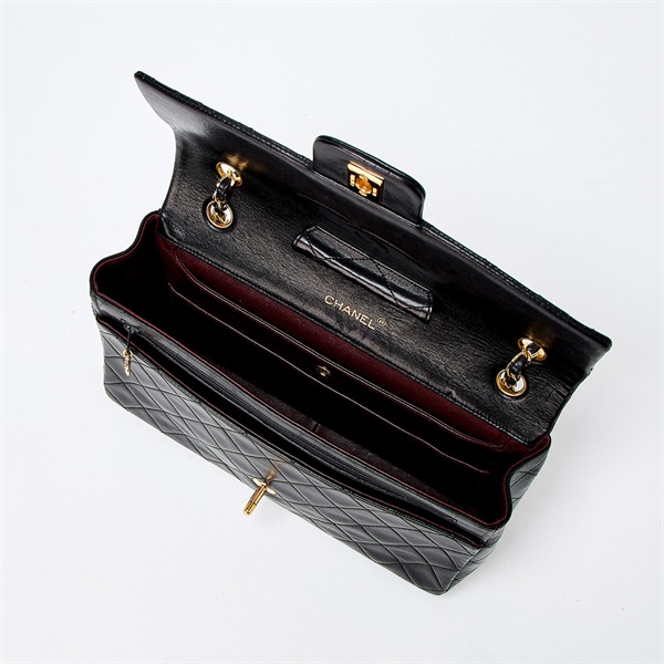 • CHANEL マトラッセ 25 ダブルフラップダブルチェーン 1990年頃 ショルダーバッグ ブラック ゴールド ラムスキン
