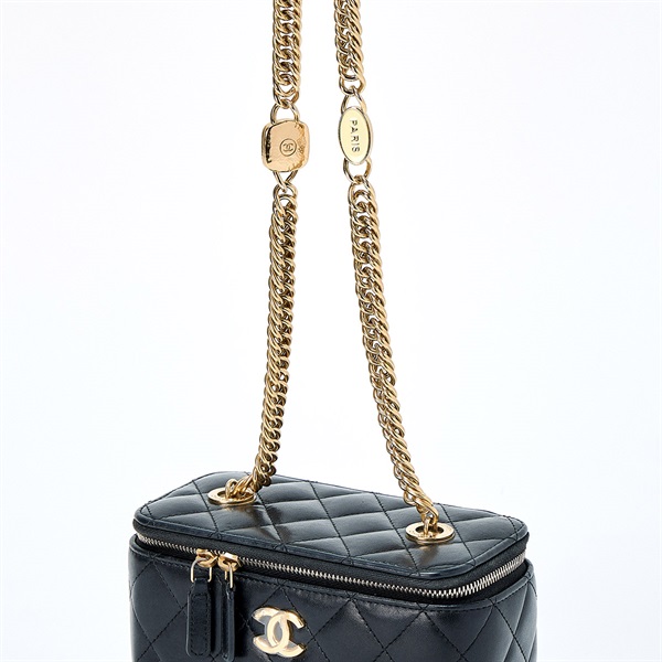 • CHANEL マトラッセ ココマーク 2021年 バニティバッグ ブラック ゴールド ラムスキン