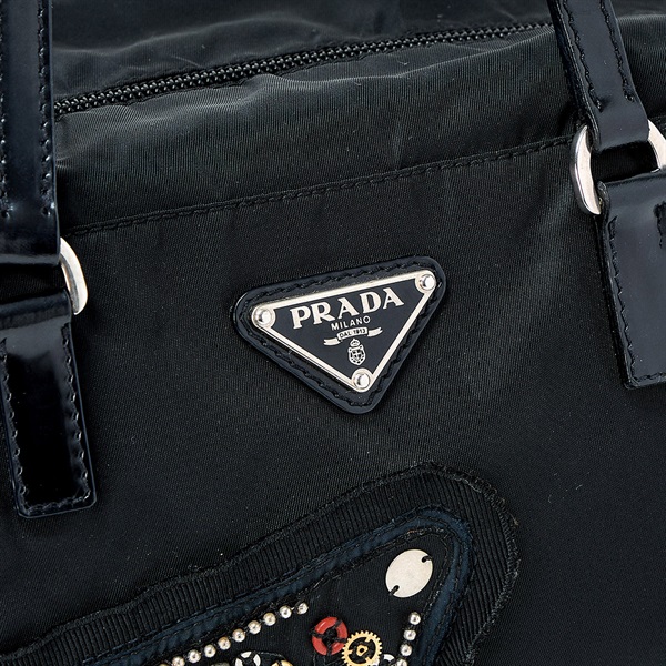 • PRADA トライアングル ビジューロボット ハンドバッグ ブラック シルバー テスートの画像1