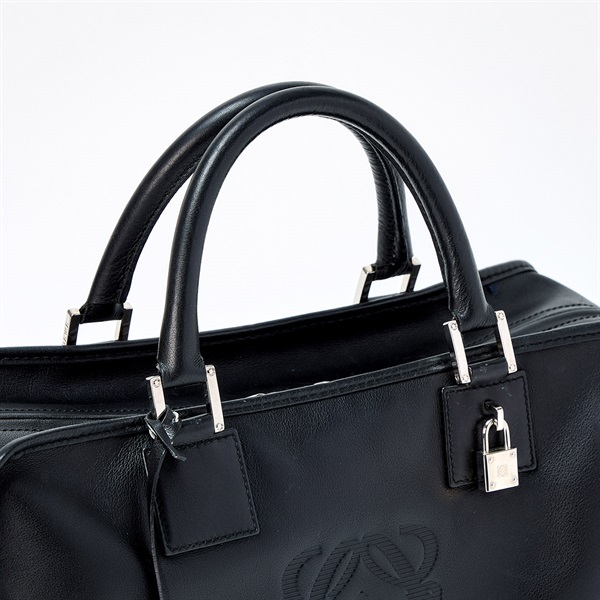 LOEWE アマソナ アナグラム 35 ハンドバッグ ブラック シルバー レザー