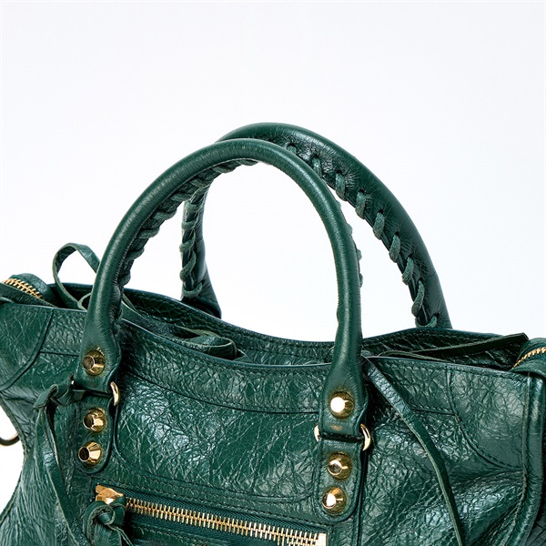 • BALENCIAGA ルシティ Le Cityスモール ハンドバッグ 431621・3091・U・528147 グリーン ホワイト ゴールド レザー