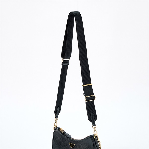 PRADA トライアングル ショルダーバッグ 1BH174 ブラック ゴールド サフィアーノ