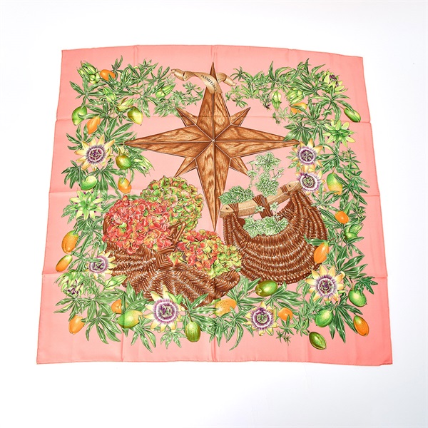 • HERMES カレ 90 PASSIFLORES / パッションフラワー スカーフ ピンク シルク