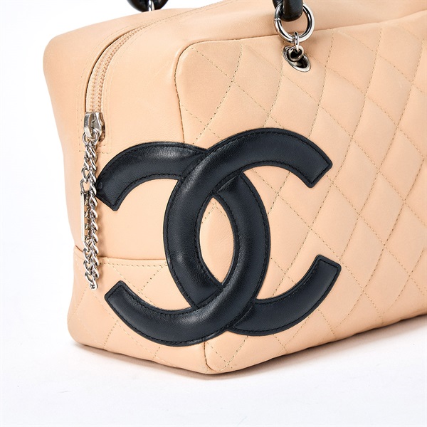 CHANEL カンボン 2003年 ハンドバッグ ベージュ ブラック シルバー ラムスキン