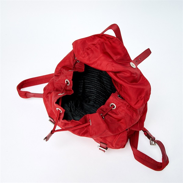 • PRADA トライアングル バックパック レッド シルバー テスート