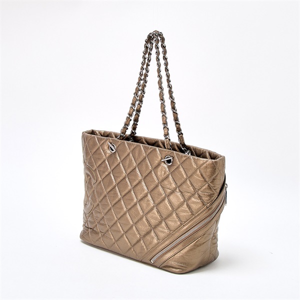 CHANEL カンボン 2007年頃 コットンクラブ トートバッグ ゴールド シルバー ラムスキン
