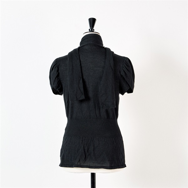 • CHANEL ココマーク ボウタイ カットソー 42 ブラック カシミア シルク