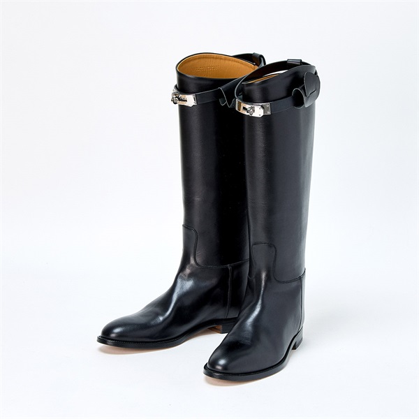 トップにケリー金具のあしらわれた、ジャンピングケリーのロングブーツ。エルメスのルーツである乗馬をインスパイアしながらも、洗練された都会らしいシルエットになっています。トレンドに左右されず、長くご愛用いただける名品です。
