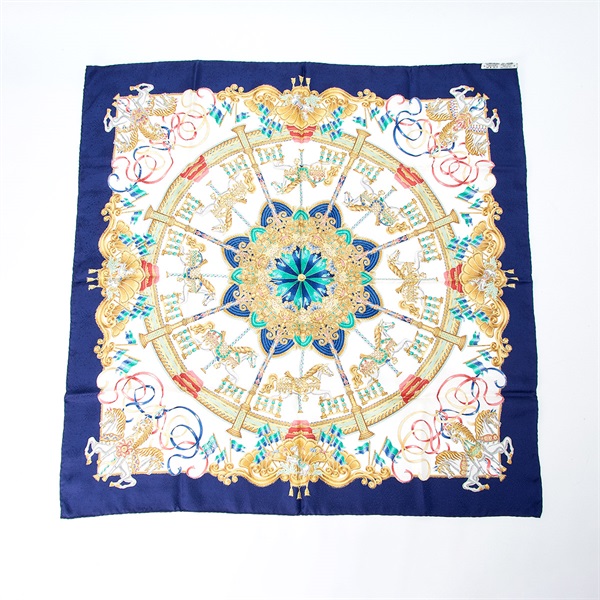 • HERMES カレ 90 Luna Park / 遊園地 スカーフ ブルー ホワイト シルク