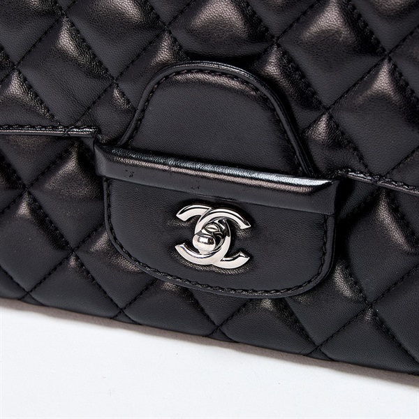 CHANEL デカ マトラッセ 30 シングルフラップダブルチェーン 2014年頃 ショルダーバッグ ブラック シルバー ラムスキン