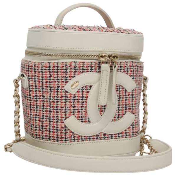 【原宿店限定】シャネル CHANEL 化粧ポーチ バニティ ツイード レザー 2way レッド ホワイト レディース 108914AM