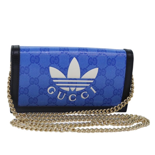 【原宿店限定】グッチ GUCCI 財布 GGスプリーム アディダスコラボ チェーン ショルダー PVC ブルー 621892 レディース 88144A