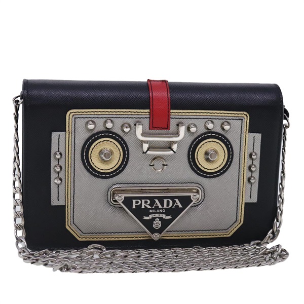 • 【原宿店限定】プラダ PRADA ショルダーバッグ チェーン サフィアーノレザー ブラック シルバー レディース 91725V