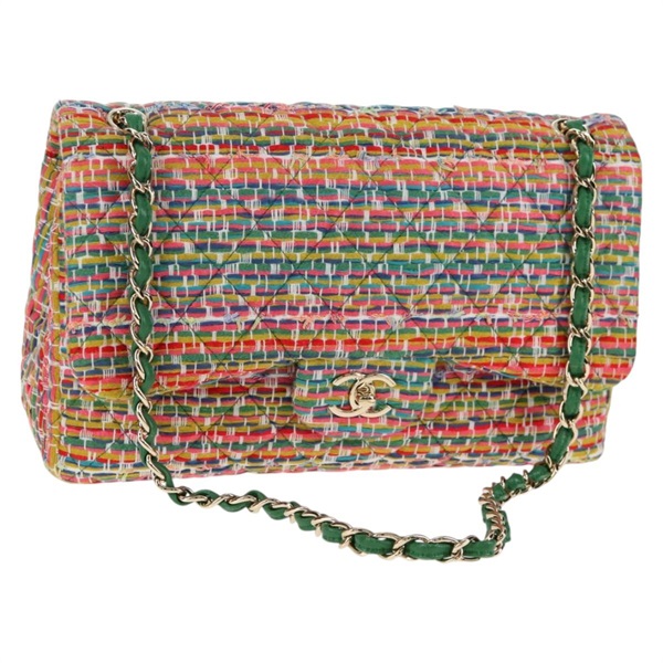 シャネル CHANEL デカマトラッセ ショルダーバッグ チェーン ダブルフラップ コットン マルチカラー ゴールド レディース 128941SM