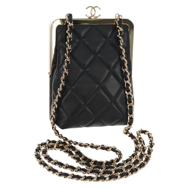 【原宿店限定】シャネル CHANEL ショルダーバッグ マトラッセ チェーン ラムスキン ブラック ゴールド レディース 144829AM
