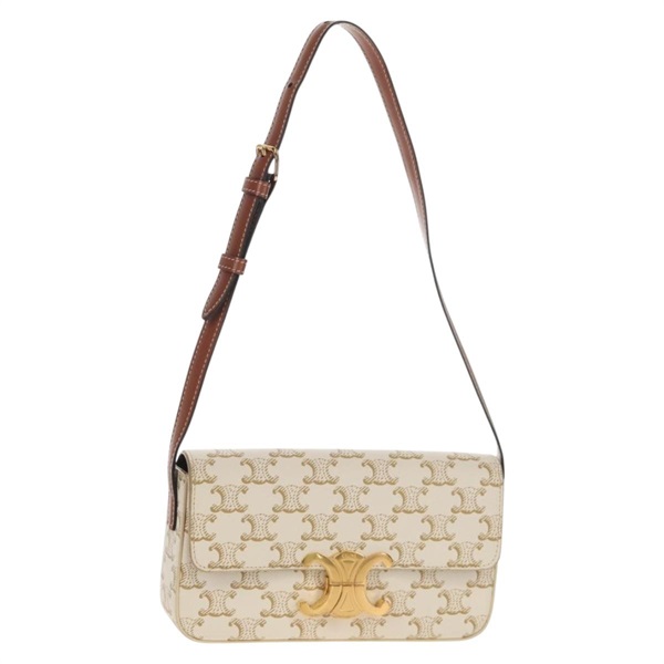 【原宿店限定】セリーヌ CELINE ショルダーバッグ トリオンフ ミニセミ PVC ブラウン ホワイト レディース 148690SM