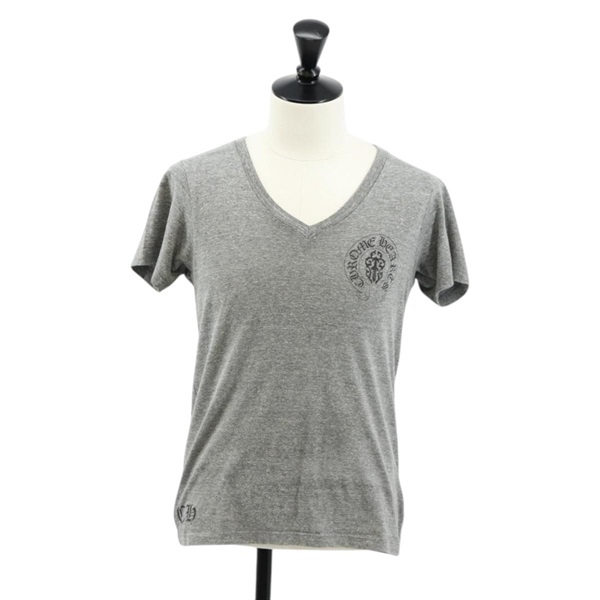 【原宿店限定】クロムハーツ Chrome Hearts 半袖Tシャツ アメリカンフラッグ ヴァインダガー Vネック ポリエステル グレー レディース 140401M