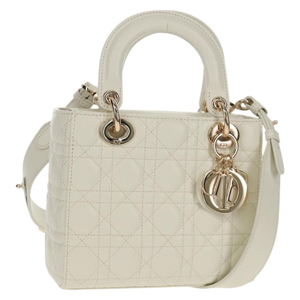 【原宿店限定】クリスチャンディオール Christian Dior ハンドバッグ レディディオール カナージュ ラムスキン 2way ホワイト ゴールド レディース ki6234M