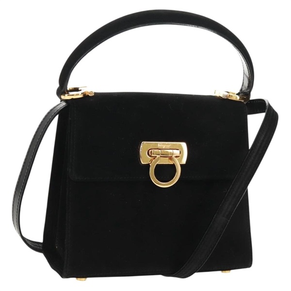 【原宿店限定】サルヴァトーレフェラガモ Salvatore Ferragamo ハンドバッグ ガンチーニ スエード 2way ブラック ゴールド レディース 160237V