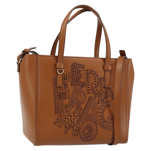 【原宿店限定】サルヴァトーレフェラガモ Salvatore Ferragamo ポニー ハンドバッグ レザー 2way ブラウン ゴールド レディース am10260V