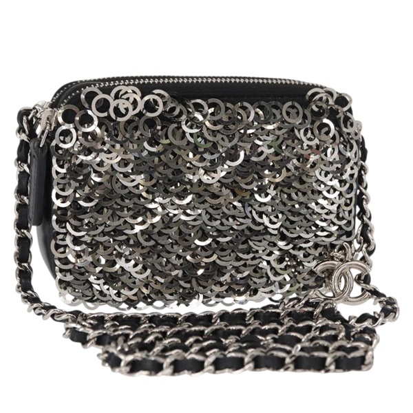【原宿店限定】シャネル CHANEL ショルダーバッグ チェーン スパンコール ブラック シルバー レディース 146554SM