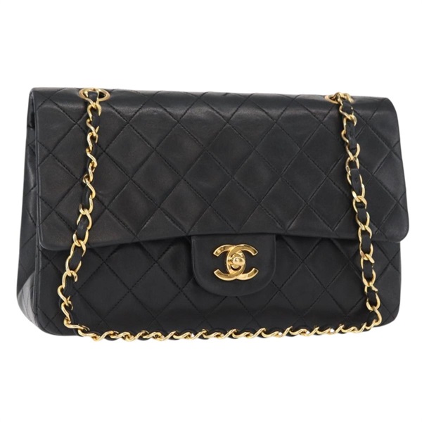 • 【原宿店限定】シャネル CHANEL ショルダーバッグ マトラッセ25 ダブルフラップ チェーン ラムスキン ブラック ゴールド レディース BA9001SAM
