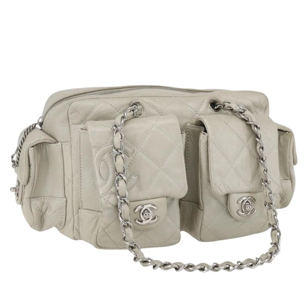 • 【原宿店限定】シャネル CHANEL ショルダーバッグ カンボンライン チェーン ラムスキン ベージュ シルバー レディース 158677SAV
