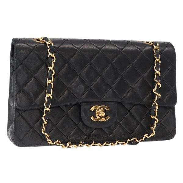 【原宿店限定】シャネル CHANEL ショルダーバッグ マトラッセ25 ダブルフラップ チェーン ラムスキン ブラック ゴールド レディース 158907SAM