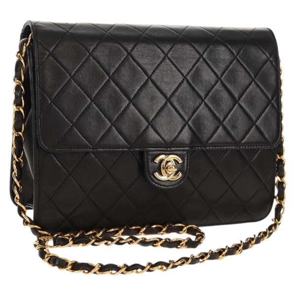【原宿店限定】シャネル CHANEL ショルダーバッグ マトラッセ ターンロック チェーン ラムスキン ブラック ゴールド レディース 159009V
