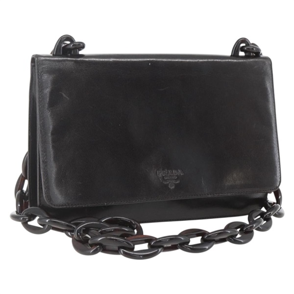 【原宿店限定】プラダ PRADA ショルダーバッグ チェーン レザー プラスチック ダークブラウン レディース am10365V