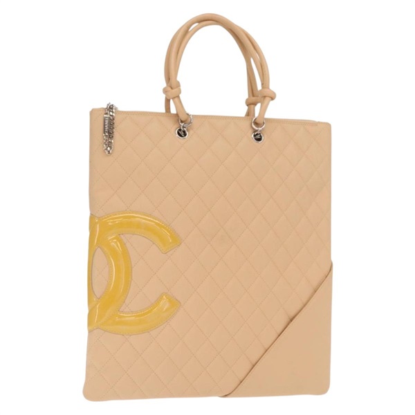 【原宿店限定】シャネル CHANEL トートバッグ カンボンライン マトラッセ カーフスキン ベージュ シルバー レディース 160890SAV
