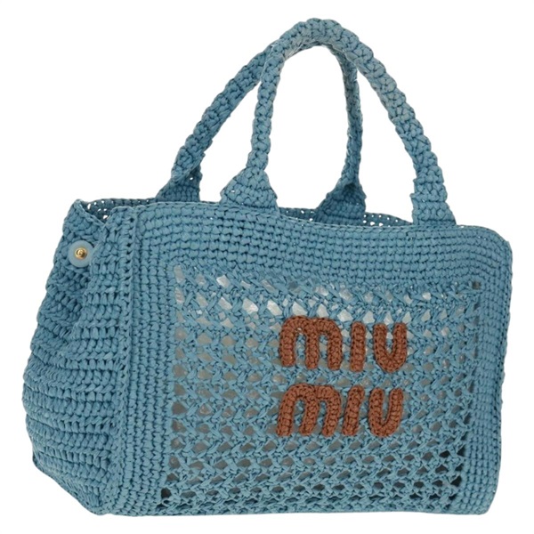 • 【原宿店限定】ミュウ ミュウ Miu Miu ハンドバッグ ラフィア ライトブルー ゴールド レディース 163039V