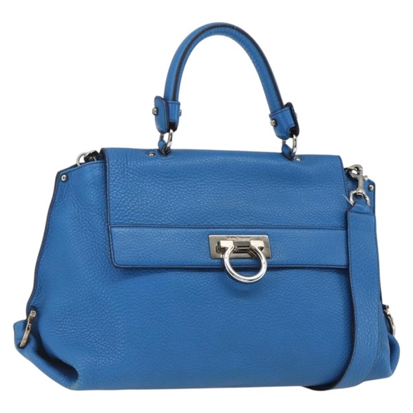 【原宿店限定】サルヴァトーレフェラガモ Salvatore Ferragamo ソフィア ハンドバッグ ガンチーニ レザー 2way ブルー シルバー レディース ai789V