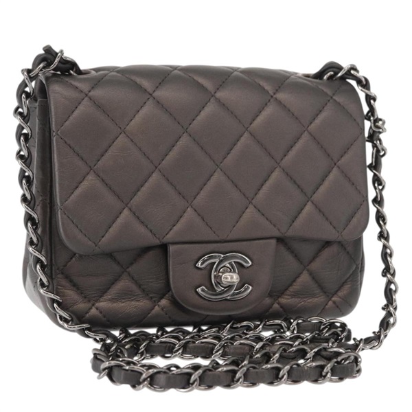 • 【原宿店限定】シャネル CHANEL ミニマトラッセ 16 ショルダーバッグ チェーン ラムスキン グレー シルバー レディース 163230V