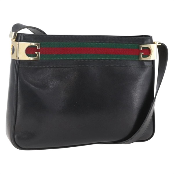 【原宿店限定】グッチ GUCCI ショルダーバッグ ウェブシェリーライン レザー ブラック レッド レディース 165070V