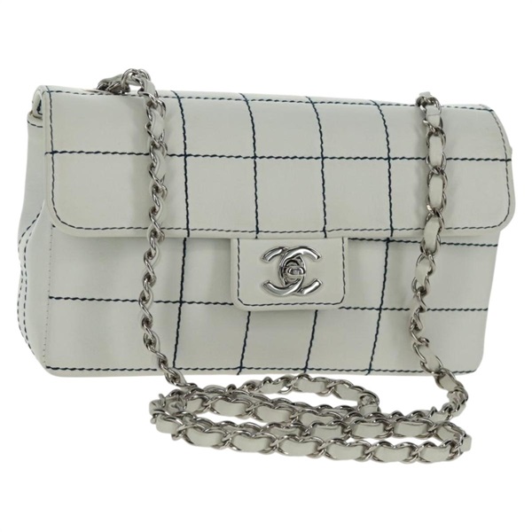 • 【原宿店限定】シャネル CHANEL ショルダーバッグ ワイルドステッチ チェーン チョコバーライン レザー ホワイト シルバー レディース am10536AV
