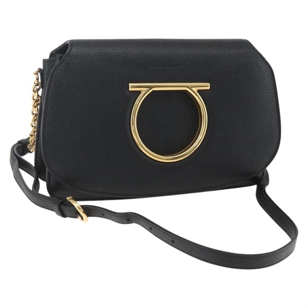 【原宿店限定】サルヴァトーレフェラガモ Salvatore Ferragamo ショルダーバッグ ガンチーニ チェーン レザー ブラック ゴールド レディース 168348V