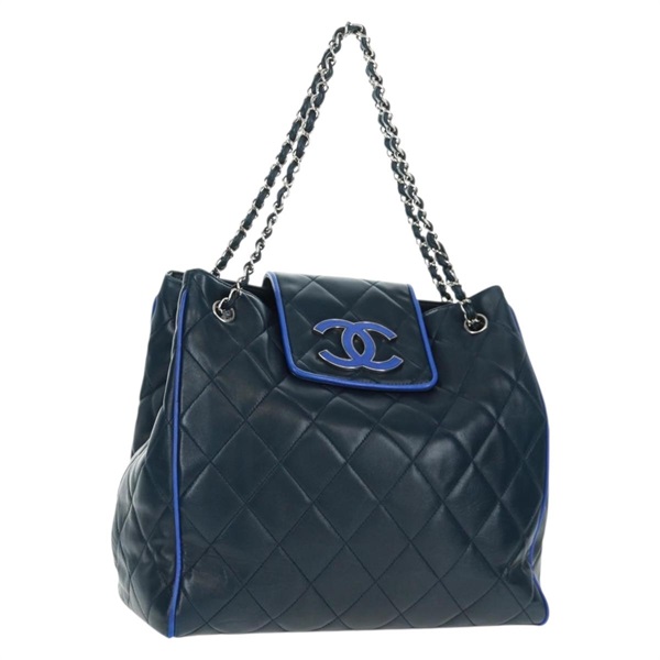 【原宿店限定】シャネル CHANEL トートバッグ マトラッセ チェーン ショルダーバッグ ラムスキン ネイビー シルバー レディース 163283V