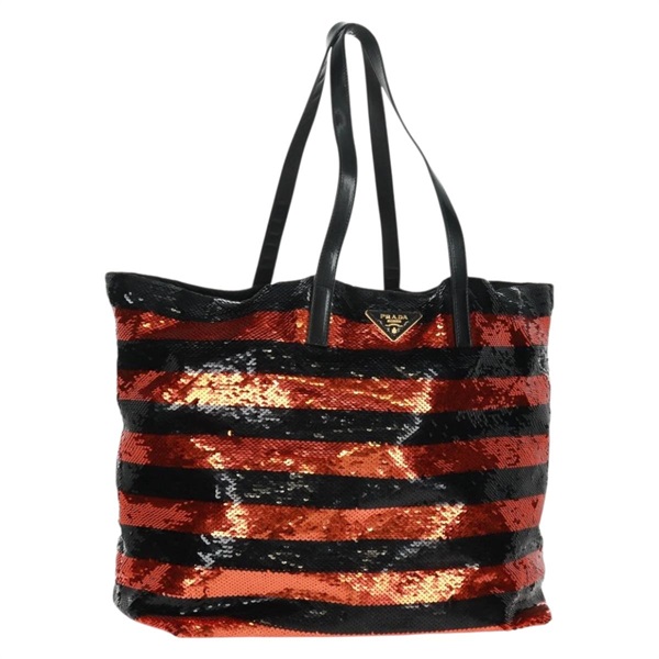 • 【原宿店限定】プラダ PRADA トートバッグ スパンコール ナイロン オレンジ ブラック レディース 162878V