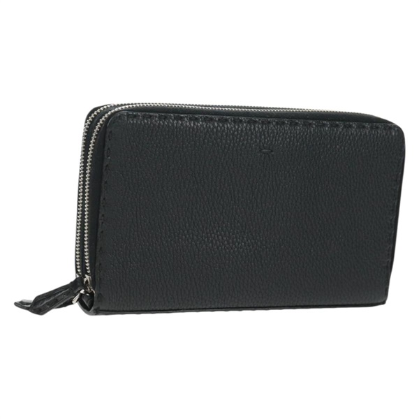 【原宿店限定】フェンディ FENDI 長財布 セレリア ダブルジップ オーガナイザー レザー ブラック シルバー レディース mr1886V