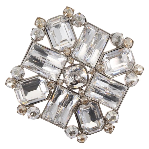 【原宿店限定】シャネル CHANEL ブローチ ラインストーン メタル シルバー レディース ka1740V