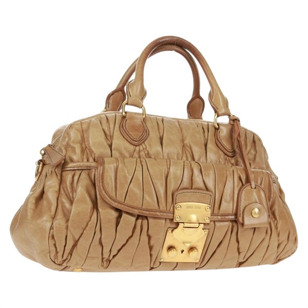 【原宿店限定】ミュウ ミュウ Miu Miu ハンドバッグ マテラッセ レザー ベージュ ゴールド レディース 168090V