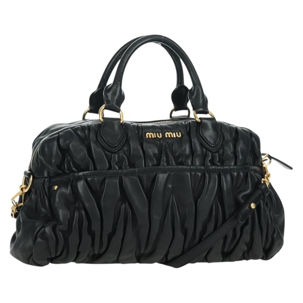 • ミュウ ミュウ Miu Miu ハンドバッグ マテラッセ レザー 2way ブラック ゴールド レディース am10901V