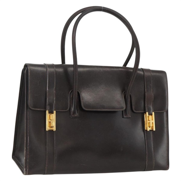 • エルメス HERMES ドラッグ30 ハンドバッグ カーフスキン ダークブラウン ゴールド レディース fm5258A