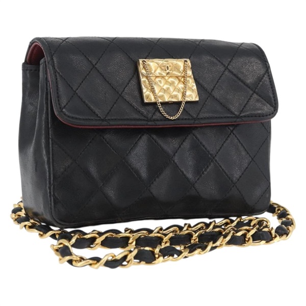 • シャネル CHANEL ショルダーバッグ マトラッセ チェーン ラムスキン ブラック ゴールド レディース 172545SAV