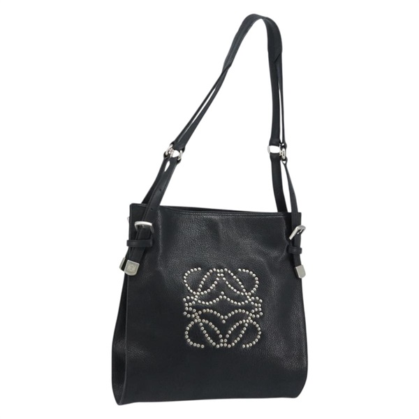 ロエベ LOEWE ショルダーバッグ アナグラム レザー ブラック シルバー レディース 173634V