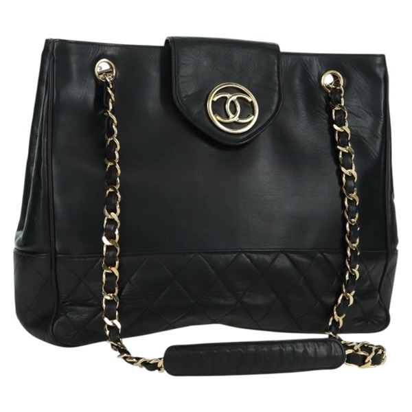 • シャネル CHANEL ショルダーバッグ マトラッセ チェーン ラムスキン ブラック ゴールド レディース 172558A